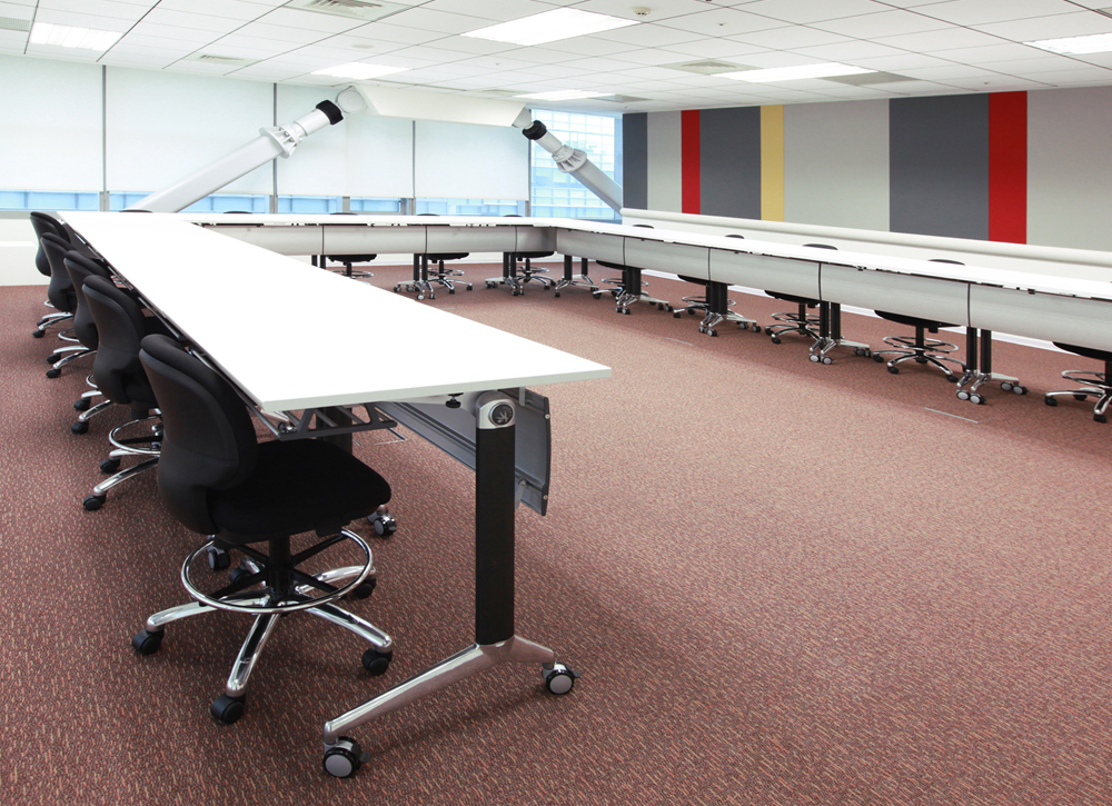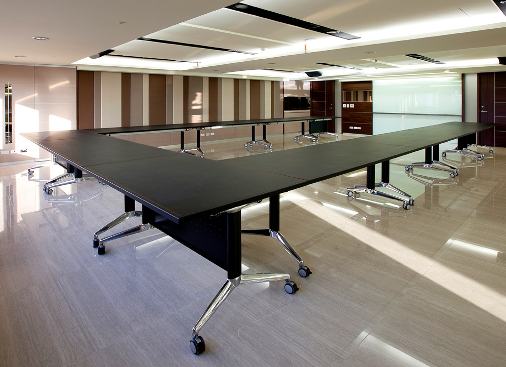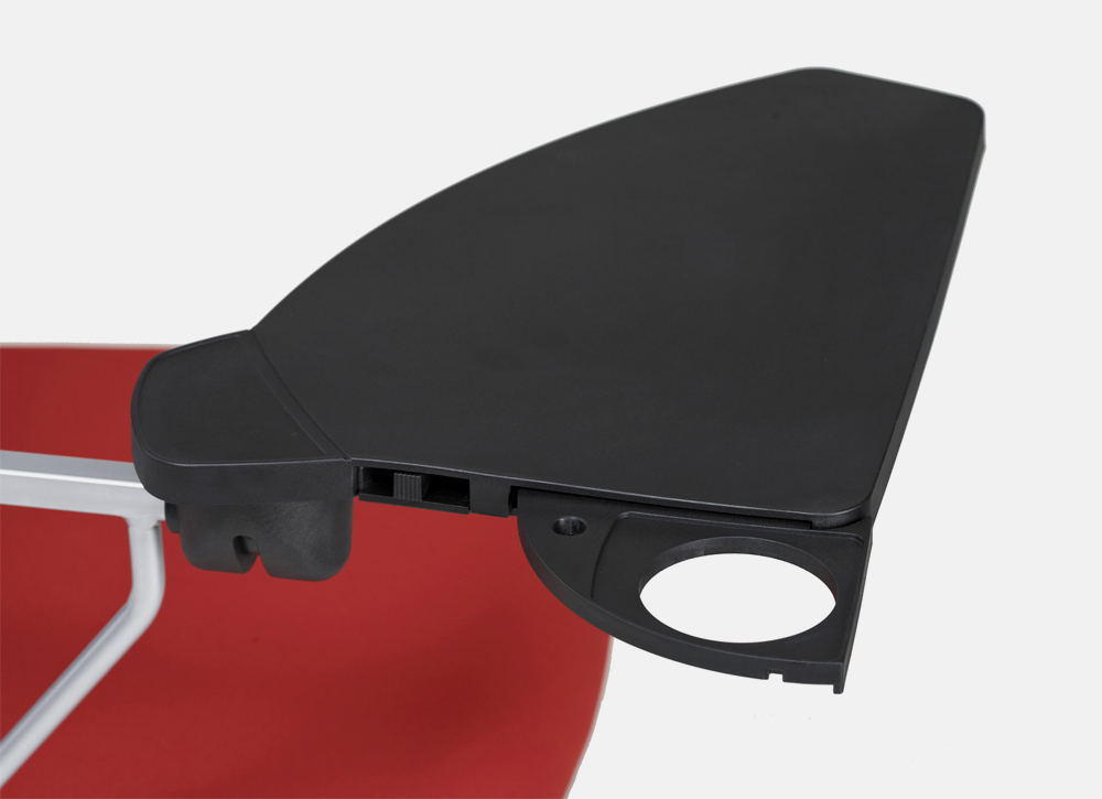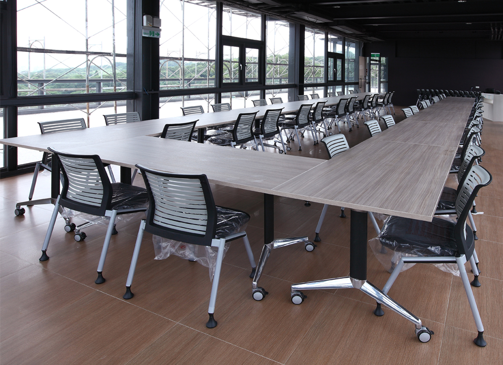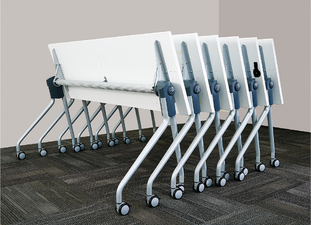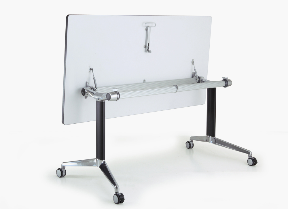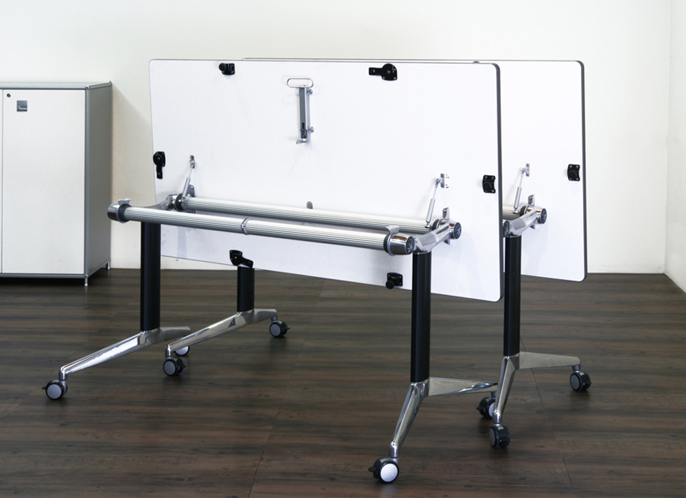 Masaların kurulumu son derece basittir. Tek butona dokunarak, masa tablası yana yatırılabilir ve dik veya katlanmış pozisyonda sabitlenir.